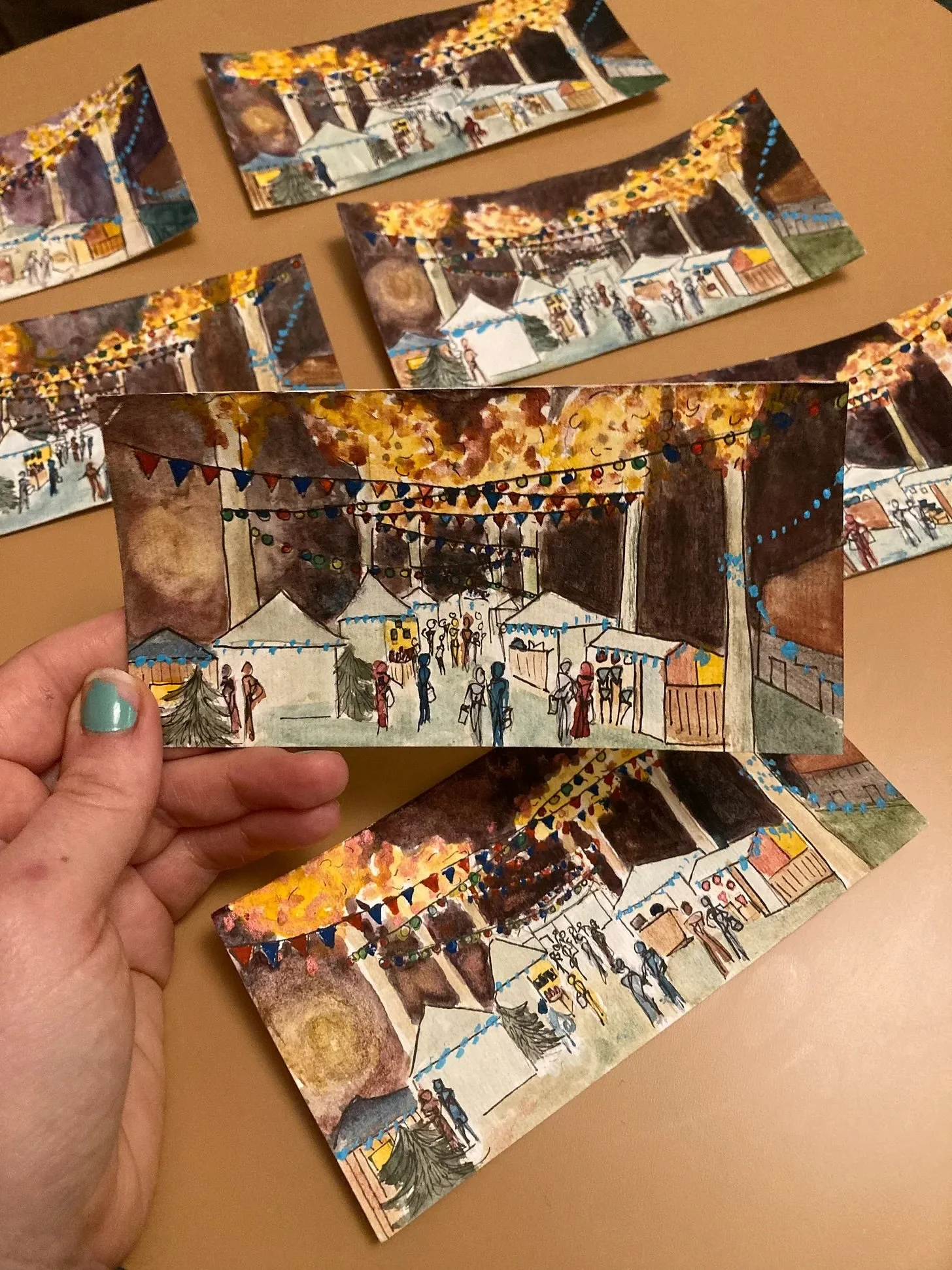 Each piece is a palm-sized work of art, and no two are alike. Soft-sculpture embroidery, erasure poetry, drawings, watercolors, and paintings are a sliver of what you can expect.